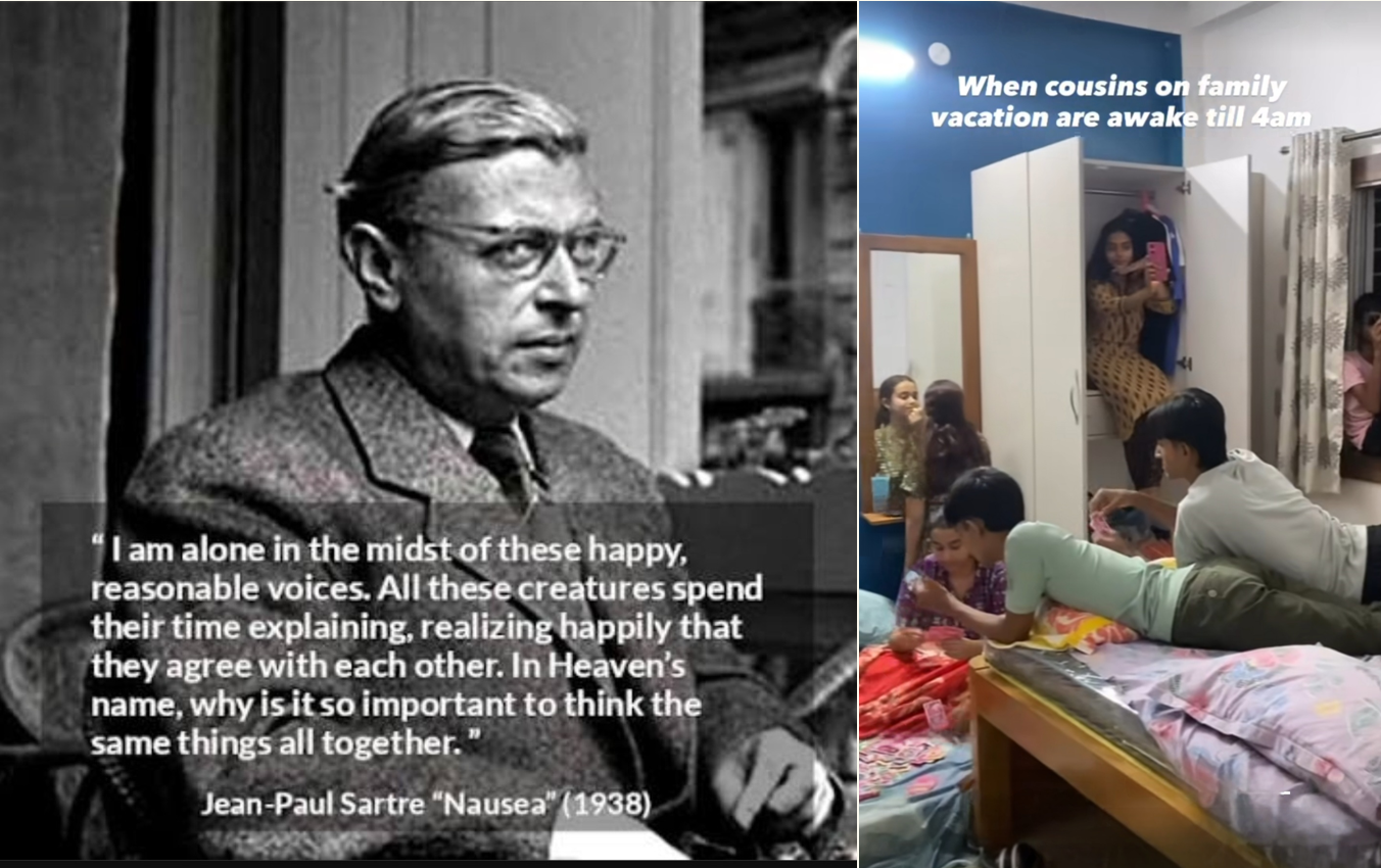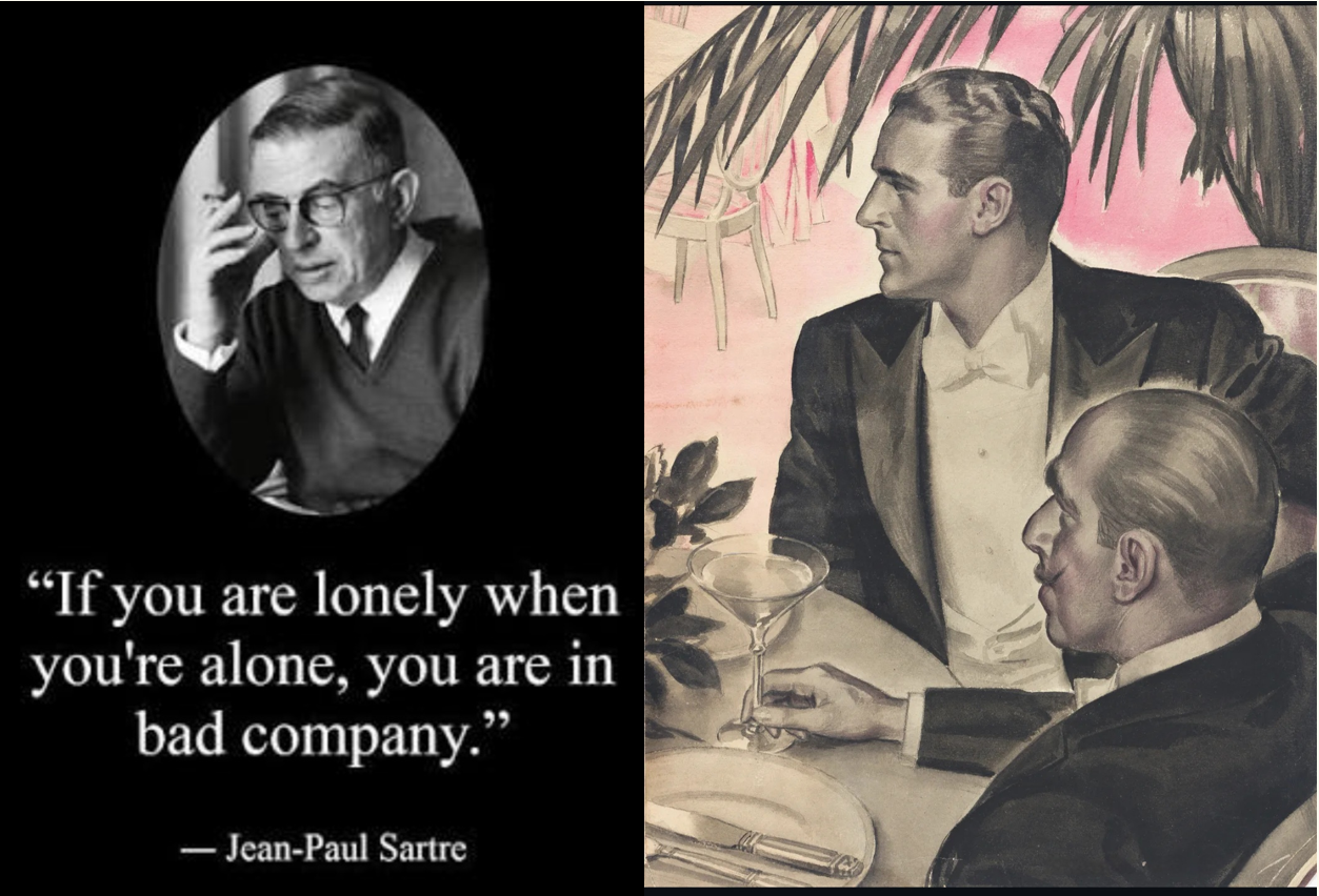 سارتر، اگزیستانسیالیست بود و افراد را به جستجوی فردی اصالت و جرئت کردن به شورش علیه جامعه فرا میخواند. در نظر اگزیستانسیالیسم، جبر محیطی جامعه، انسان را "از خود بیگانه" میکند و انسان باید بداند که با پیروی کورکورانه از جامعه و انجام دادن اعمالی که خوشایند جامعه باشند، نمیتواند احساس خوشبختی کند. اگزیستانسیالیسم در اولین آشکارگی های فلسفی خود در نظریات کیر کگارد، مبنایی عرفانی، مسیحی و خداپرستانه داشت. اما در زمان سارتر به آنجا رسید که حتی خود باور به خدا و عقاید دینی را نیز بخشی از تقلید از جامعه شمرد و طرد نمود. با این حال، رشد سکولاریسم در زمان سارتر که خود، بی خدا بود، نشان داده بود که خلاص شدن از دست خدا به هیچ وجه برای رهایی از جبر جامعه کافی نیست و درنتیجه سارتر به نوعی به هایدگر برگشته بود که میگفت حتی اگر شما به عنوان فرد، علیه استانداردهای جامعه شورش کنید، باز هم مجبورید عقاید جدیدتان را از طریق تاثیرپذیری از گروه هایی از جامعه به دست بیاورید و بنابراین اصالت، حتی در فردی ترین ظواهر خود، از طریق جمع گرایی به دست می آورد. بنابراین و در شرایطی که تمام فرقه ها و مکاتب مغربزمین دوران سارتر توسط پیروان ایدئولوژی غالب سرمایه داری کنترل میشدند، سارتر به دست آمدن اصالت را غیر ممکن میشمرد مگر این که نظام حاکم سرنگون شود و ازاینرو مارکسیسم انقلابی را توصیه کرده و از افراط در فردگرایی به افراط در جمع گرایی رسیده بود. (دراینباره رجوع کنید به: "اصالت از دیدگاه سارتر": حسین خطیبی و امیر علی عباس زمانی: اطلاعات حکمت و معرفت: شماره ی 174: بهار 1404) از طرفی همدوران با سارتر، آلبر کامو، ریشه های عرفانی-مسیحی اگزیستانسیالیسم را در ادبیاتی مشابه با سارتر، بسیار مشخص تر به نمایش میگذارد. زهرا قصرالدشتی در مقاله ی "بازگشت کامو به اخلاق اصیل انسانی" (اطلاعات حکمت و معرفت: شماره ی 174: بهار 1404: ص184) مینویسد: