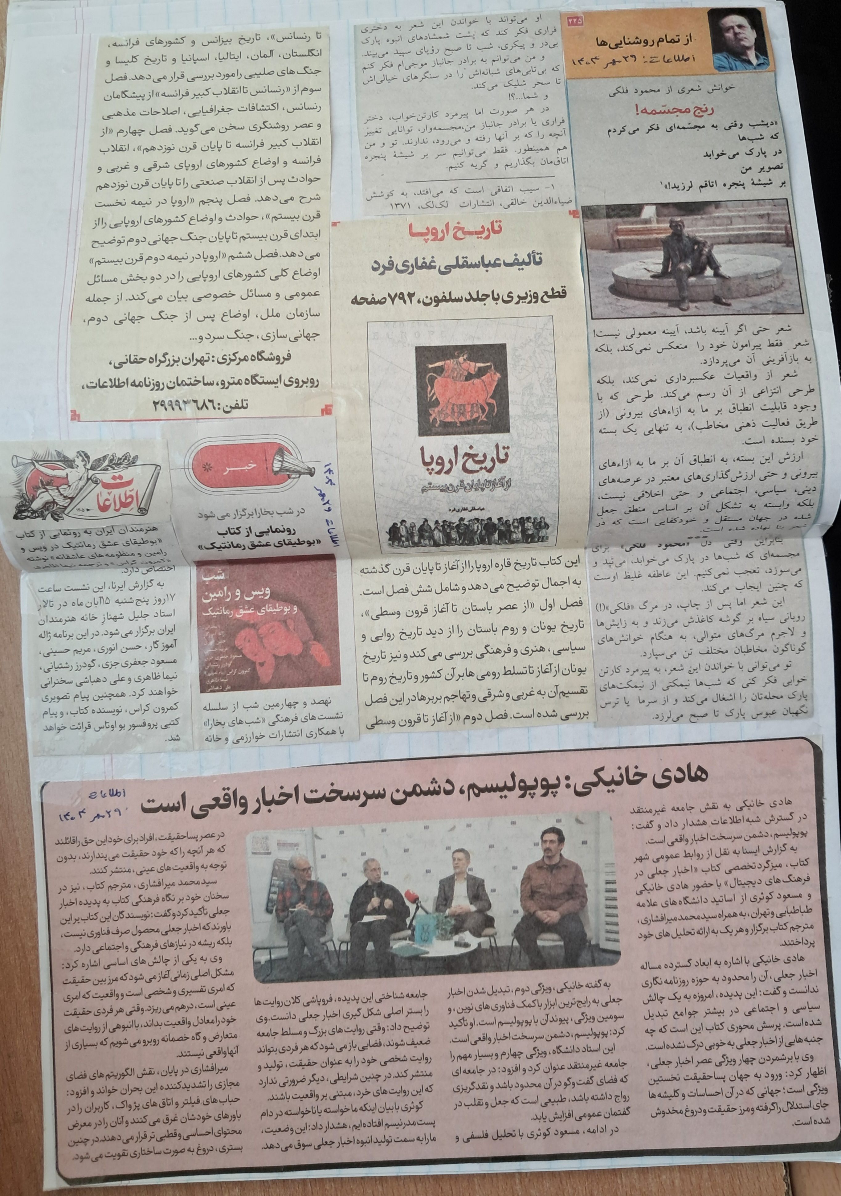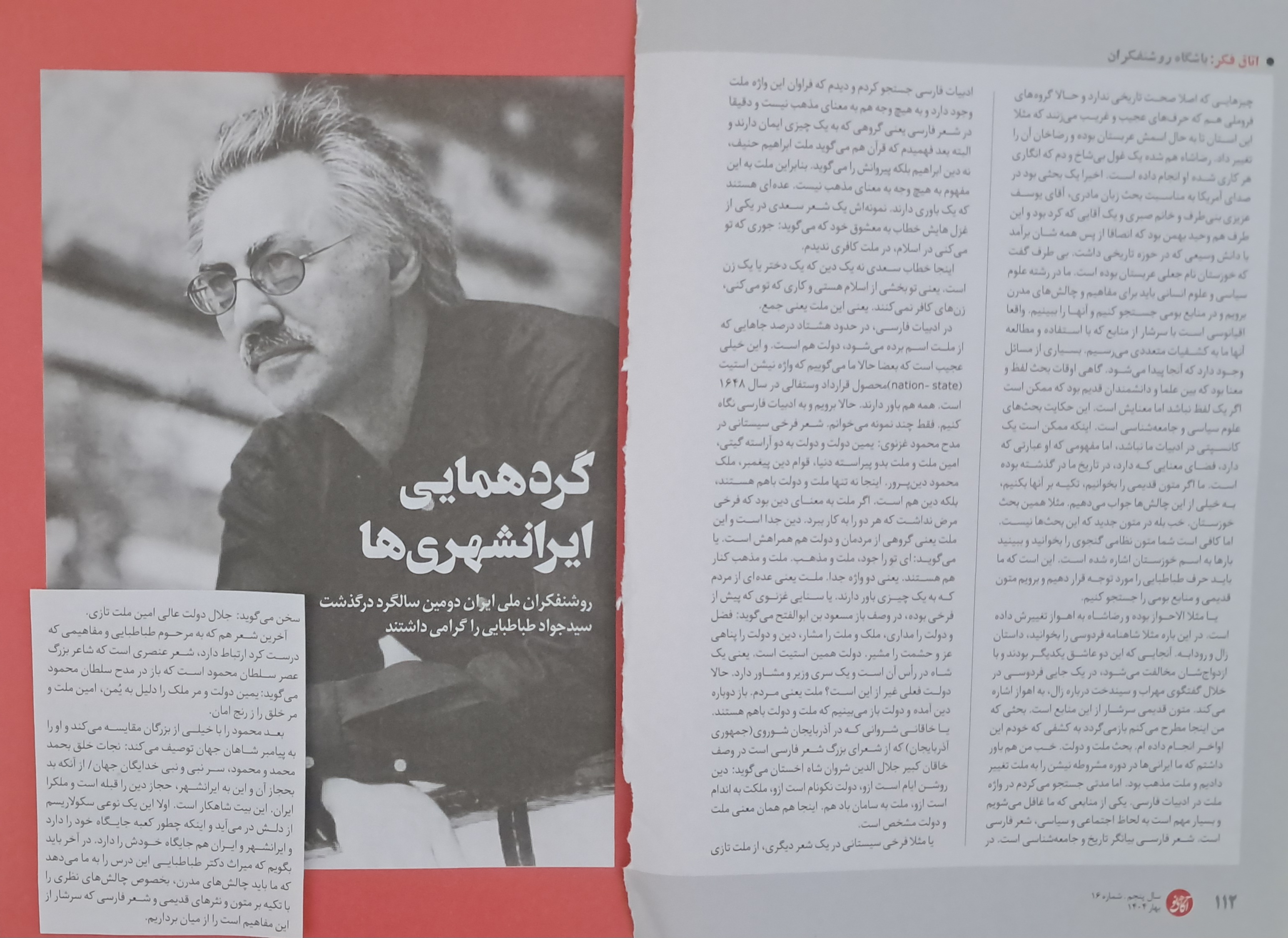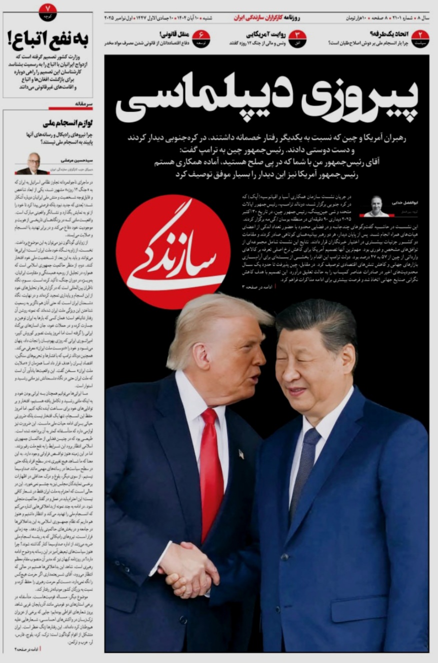 در روز 13 آبان 1404 روزنامه ی سازندگی، صفحه ی اول خود را به خبری از سخنرانی جدید دکتر یوسف اباذری اختصاص داد با تیتر درشت «حمله به اندیشه ی ایرانشهری: یوسف اباذری پس از سالها سکوت در دانشکده ی علوم اجتماعی سخنرانی کرد و به مدافعان نظریه ی ایرانشهر حمله کرد. او همچنین از دوم خرداد بهعنوان درخشانترین دوره ی دانشگاهها در ایران یاد کرد و وضعیت فعلی را همچون مُرده دانست.» و به این شرح: