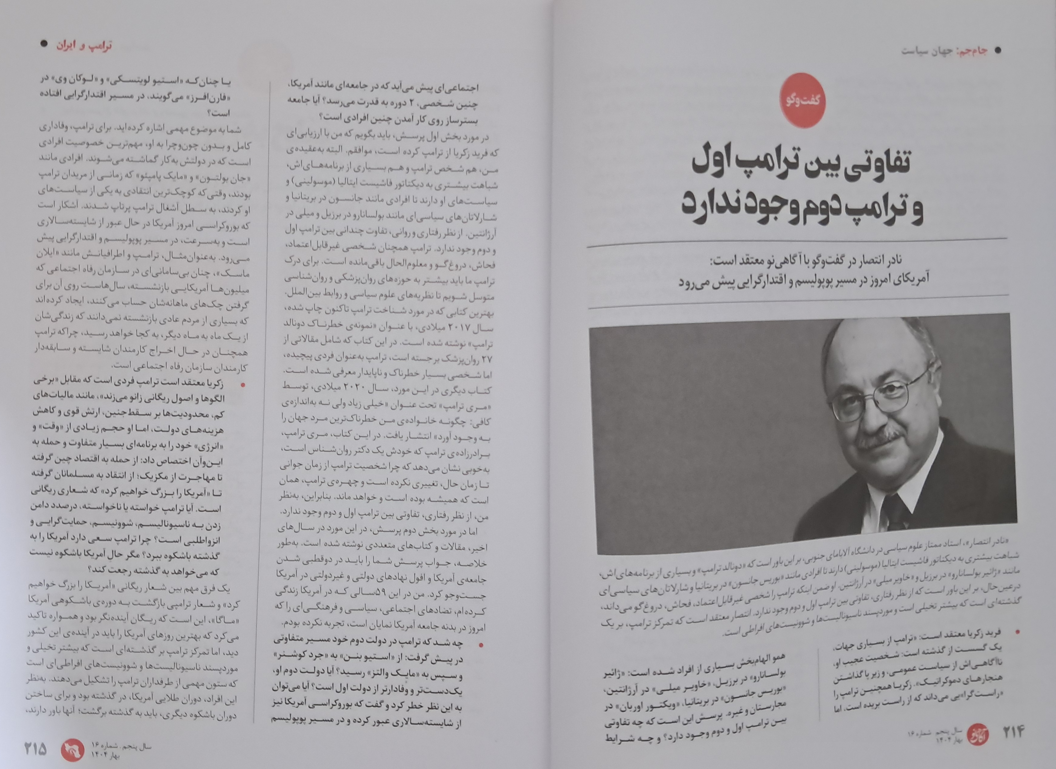 در این مدتی که از مصاحبه گذشت، ما دیدیم که نام مولر دادستان پرونده های ترامپ چقدر راحت و به ناگهان از تمام اخبار حذف شد، و دوباره به قدرت رسیدن ترامپ بعد از دوره ی میانی رئیس جمهوری که اصلا رئیس جمهور نبود و فقط محبوبیت ترامپ را افزود را هم دیدیم. اگر فوکویاما فکر میکرد که واقعا در عرض مدتی کوتاه، تغییر بزرگی در امریکا رخ میدهد و با عوض شدن به اصطلاح رهبر سیاسی، روحیه ی مردم امریکا هم عوض میشود، پس واقعا داشت خودش را فریب میداد و شاید این دفعه ی اولش نبوده باشد. او بعد از دیدن سرنوشت پدر و مادرش، فهمید که برای این که مورد آزار امریکایی ها قرار نگیرد، باید خود را کاملا امریکایی کند و ریشه های آسیایی خود را به دور بیندازد و به طرزی افراطی در این راه به یکی از بزرگترین ایدئولوگ های سیاست امریکا تبدیل شد. او در تمام مدت داشت سعی میکرد به دشمنش ابراز دوستی کند تا مورد خشم او قرار نگیرد. اصلا موضوع عجیبی نیست؛ چون در ایران دکتر اباذری هم بخش بزرگی از جامعه ی ما در فضای مجازی دارند همین پیام را به همدیگر و البته به امریکایی ها میرسانند.